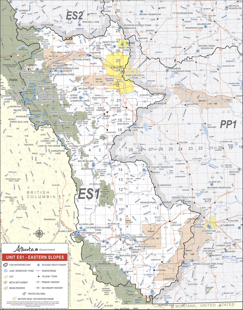 The Eastern Slopes four Watershed Units are the Oldman and Bow rivers (ES1), the Red Deer and North Saskatchewan rivers (ES2), the Athabasca and Pembina rivers (ES3) and the Smoky River (ES4).